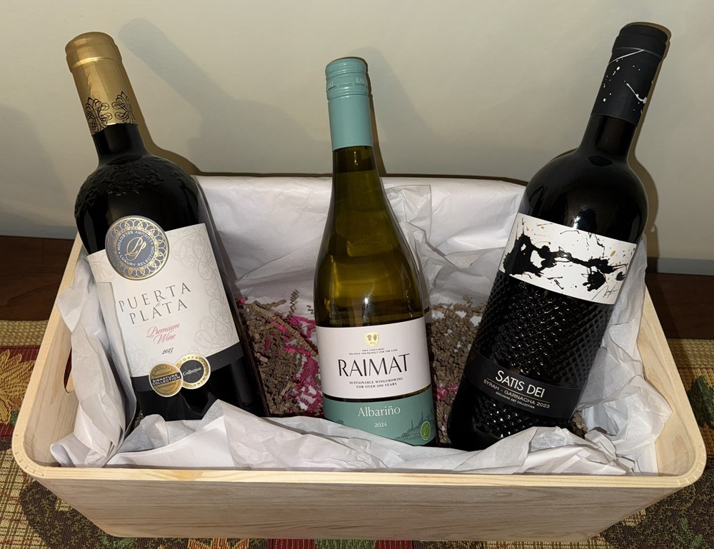 Take your taste buds on a trip through Spain with this bold, beautiful, and downright delicious trio of wines: 🍷 Satis Dei Syrah-Garnacha 2023 – A showstopper in both looks and flavor. With a textured bottle and modern art label, this red blend brings together Syrah’s spice and Garnacha’s juicy fruit in a perfect dance of depth and smoothness. It’s a conversation piece and a crowd-pleaser. 🍷 Puerta de Plata Premium Red 2023 – Rich, elegant, and ready to impress. Crafted as part of a “Luxury Selection,” this wine wraps you in notes of ripe berries and soft oak—perfect for your next dinner party or that “just because it’s Tuesday” pour. 🍇 Raimat Albariño 2024 – Bright, refreshing, and organically grown, this white wine from one of Spain’s most sustainable vineyards bursts with citrus, peach, and coastal zest. It’s like a seaside breeze in a glass. Together, this trio celebrates the art, flavor, and passion of Spanish winemaking—ideal for sharing, collecting, or savoring all to yourself. ¡Salud! 🍾 (Must be 21 to bid on, purchase or pick up)