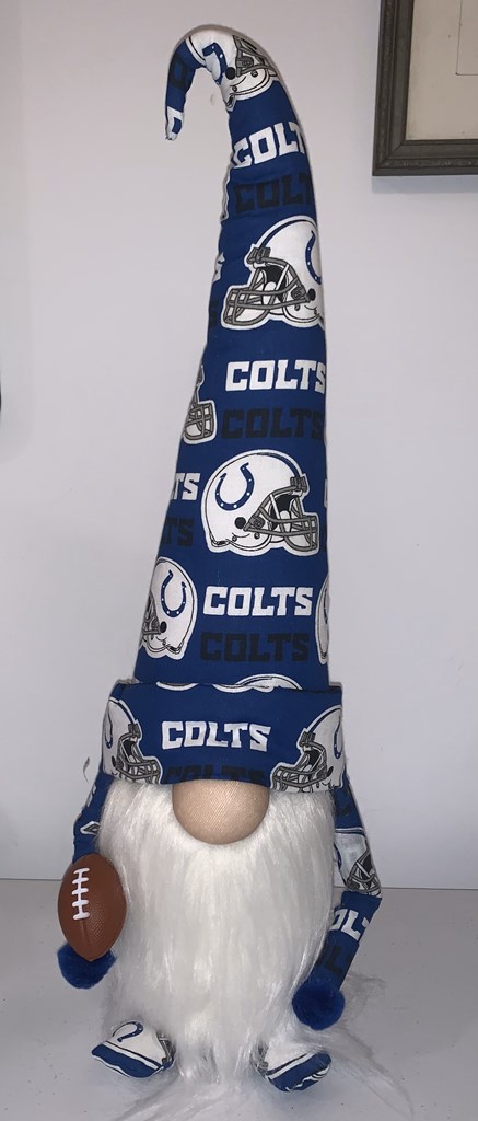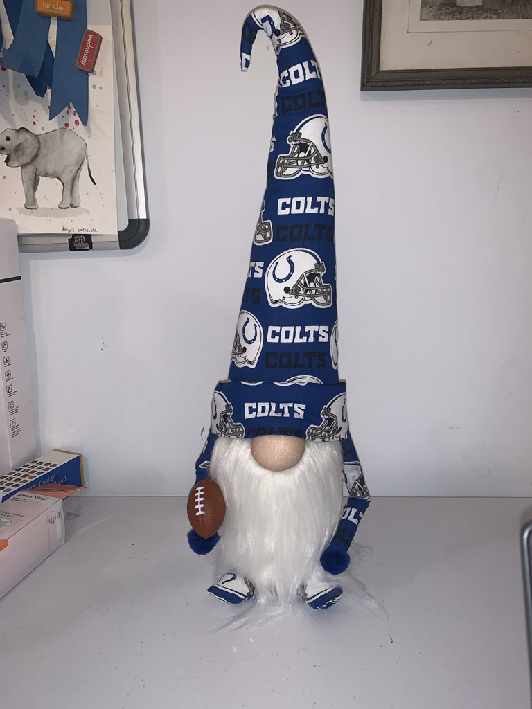 Colts vs 49ers on Dec 22nd, 2025 @ 7:15pm @ Lucas oil Stadium. Section 536, Row 2, Seats 7&8. Includes parking pass. Seat View and parking location pictures included. Winning bidder (after payment) will have the tickets electronically transferred to them by the donor. A one of a kind Indianapolis Colts gnome. Full of Colts Blue, the gnome stands about 17" tall and weighs about 3-5 lbs. He needs a loving home so he can help you cheer on your beloved Colts.
